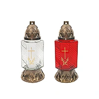 Candelă sticlă cu capac 24cm 28ore cruce, albă/rosie