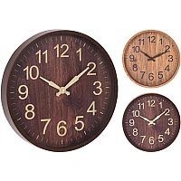 Ceas de perete rotund 30cm, H4cm, plastic, 2 culori, lemn