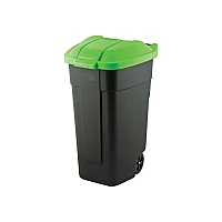 Cosul pentru deseuri cu maner si roti O/W 110 l, 88X52X58 cm, negru/verde