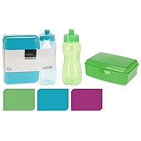 Lunch-box EH cu sticla 18X13X7cm, plastic Set practic format din caserolă din plastic și sticlă pentru băut, asortate în aceeași culoare – ideal pentru copii la școală, excursii sau picnicuri. Dimensiuni: • Caserolă: 18,5 × 13,5 × 7 cm • Sticlă: diametru 71 mm, înălțime 205 mm Un set comod și colorat, perfect pentru a transporta gustările și băuturile preferate oriunde.
