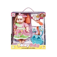 Papusa cu sunet si acesorii (buline roz) 33X28.5X11cm