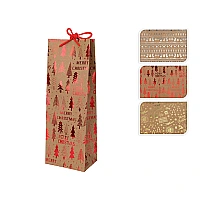 Punga cadou pentru sticle "Brazi" 12X9X35сm Această pungă special concepută pentru sticle este soluția perfectă pentru a împacheta într-un mod deosebit vinul, șampania sau alte băuturi pe care dorești să le oferi cadou. Cu designul său inspirat de pădurile de iarnă, această pungă va adăuga o notă de rafinament și căldură oricărui cadou. Dimensiuni perfecte: Cu măsurători de 12x9x35 cm, punga este special adaptată pentru a găzdui sticle de diferite forme și mărimi, asigurând o potrivire ideală. Material ecologic: Fabricată din hârtie de înaltă calitate, această pungă este o alegere eco-friendly, contribuind la protejarea mediului. Design festiv: Imprimeul cu brazi în nuanțe de verde creează o atmosferă de sărbătoare și aduce aminte de magia iernii. Mânere din sfoară naturală: Mânerele din sfoară adaugă un aspect rustic și autentic, completând perfect designul pungi. Versatilă: Perfectă pentru a împacheta nu doar sticle de vin sau șampanie, ci și alte băuturi sau chiar cadouri personalizate.
