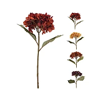 Ramură decorativă "Hortensia" 60cm Material: plastic de înaltă calitate, cu textură și aspect realist. Dimensiuni: înălțime totală aproximativ 60 cm. Culori: galben, maro, roșu, bordo. Utilizare: decor interior, aranjamente florale, completare pentru buchete. Aspect natural: petalele sunt lucrate cu atenție la detalii, imitând perfect textura și culoarea hortensiei naturale. Durabilitate: nu se ofilește și nu necesită întreținere specială. Versatilitate: potrivită pentru diverse aranjamente florale, fie individual, fie combinată cu alte flori. Ușor de întreținut: se curăță cu o cârpă uscată.