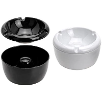 Scrumiera din plastic cu capac 10X6cm alb/neagra Scrumiere care perfect se potrivesc pentru utilizare in aier liber, la fel această scrumieră neagră sau albă va fi ideală în condiții de vânt datorită capacului său care împiedică imprastierea cenușii. Compus din 2 părți: un capac și un recipient. Capacul are 3 orificii pentru tigari. Dimensiuni: Ø 9,9 cm x H 5,9 cm. Material: melamina.
