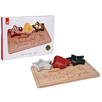 Set de Craciun 4 buc, cupe + suport din lemn