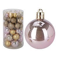 Set globuri pentru brad din plastic 60 buc "Gold Pink" in cilindru