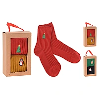 Sosete de Craciun pentru femei 2perechi in cutie cadou, poliester, 2 culori