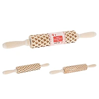 Sucitor din lemn "Inimi" EH 35cm, cu manere Acest sucitor din lemn, cu o lungime de 35 cm, este perfect pentru a crea aluaturi cu modele delicate de inimioare. Este un instrument ideal pentru a impresiona atât copiii, cât și adulții, adăugând o notă de romantism și originalitate oricărui preparat. Material: Lemn de înaltă calitate, durabil și ușor de curățat. Dimensiuni: 35 cm lungime, cu manere confortabile pentru o prindere sigură. Design: Model cu inimioare gravate, care imprimă un aspect deosebit aluatului. Utilizare: Ideal pentru a întinde aluatul pentru prăjituri, fursecuri, pâine sau pizza. Întreținere: Se curăță ușor cu o cârpă umedă și se usucă imediat. Versatil: Poate fi folosit pentru o varietate de aluaturi. Ușor de utilizat: Manerele confortabile asigură o prindere sigură și o utilizare facilă. Durabil: Lemnul de calitate asigură o durată lungă de viață. Estetic: Modelul cu inimioare îl transformă într-un accesoriu de bucătărie elegant. Cadou perfect: Un cadou original și practic pentru pasionații de gătit.