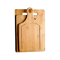 Tocatoare din bambus Fie ca doresti sa prepari garnituri delicioase, tocanite sau supe, procesul de preparare va incepe intotdeauana cu maruntirea legumelor. Si, pentru a a obtine dimensiunea ideala, vei avea nevoie de un tocator rezistent si stabil cu care poti duce treaba la bun sfarsit. De acum te va ajuta setul de 3 tocatoare din bambus, fiind foarte practice, usor de depozitat si nelipsite din orice bucatarie. Tocatoarele se pot utiliza si ca platou de servire. Material: bambus